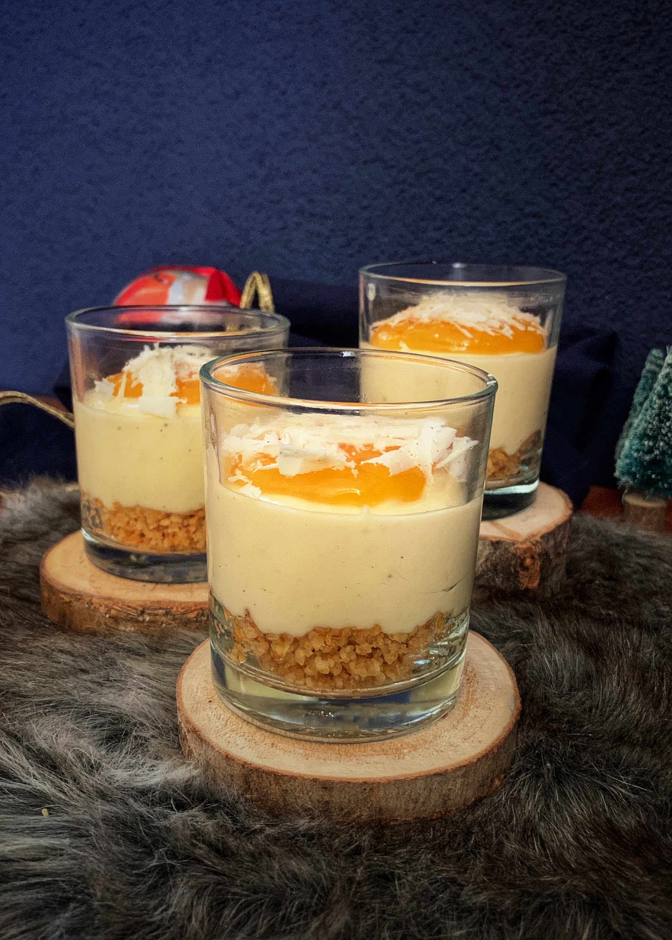 - Blitz the SHORTBREAD BISCUITS into crumbs: you’ll just need to pulse it a few times. Then, stir into the MELTED BUTTER and divide between your glasses or pots. Don’t pack it down too much. Put your pots in the fridge while you make the cheesecake.