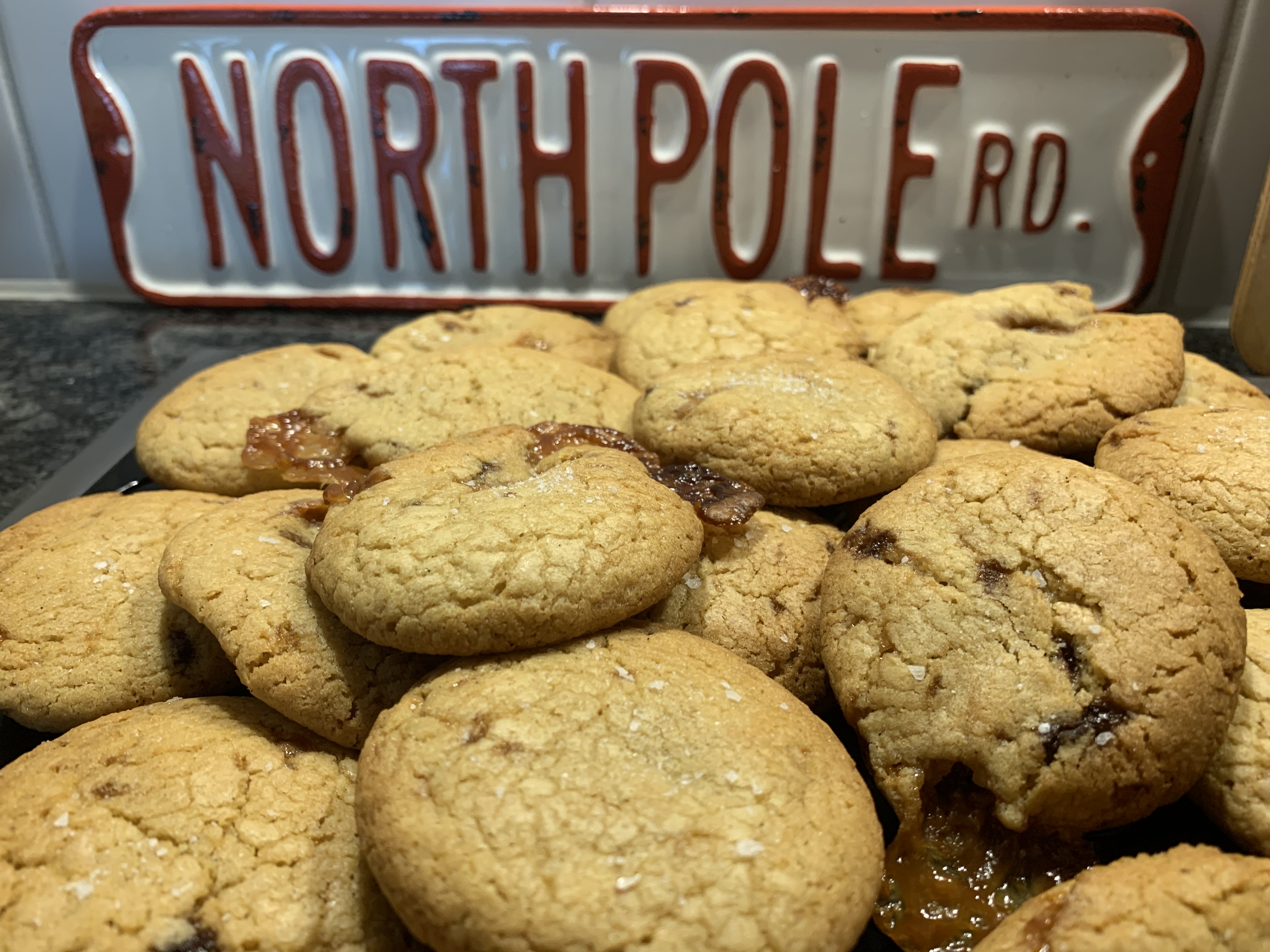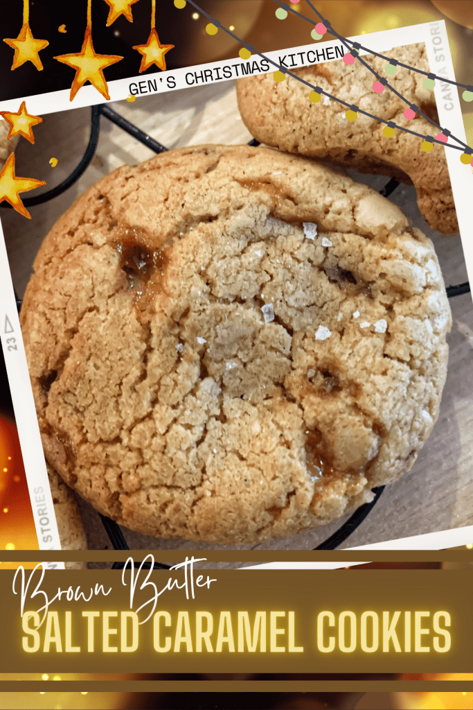 Salted Caramel cookies are a must for me at Christmas. These ones are extra-specially good. When it comes to making these cookies, it’s all about the ingredients. Try and find some molasses sugar, or choose some good soft brown sugar. Be patient when frying the butter and let it go lovely and dark and nutty. Choose good quality soft caramels. And for that extra touch of flair, invest in some top-shelf salt. FYI, vanilla salt is incredible on these cookies!
