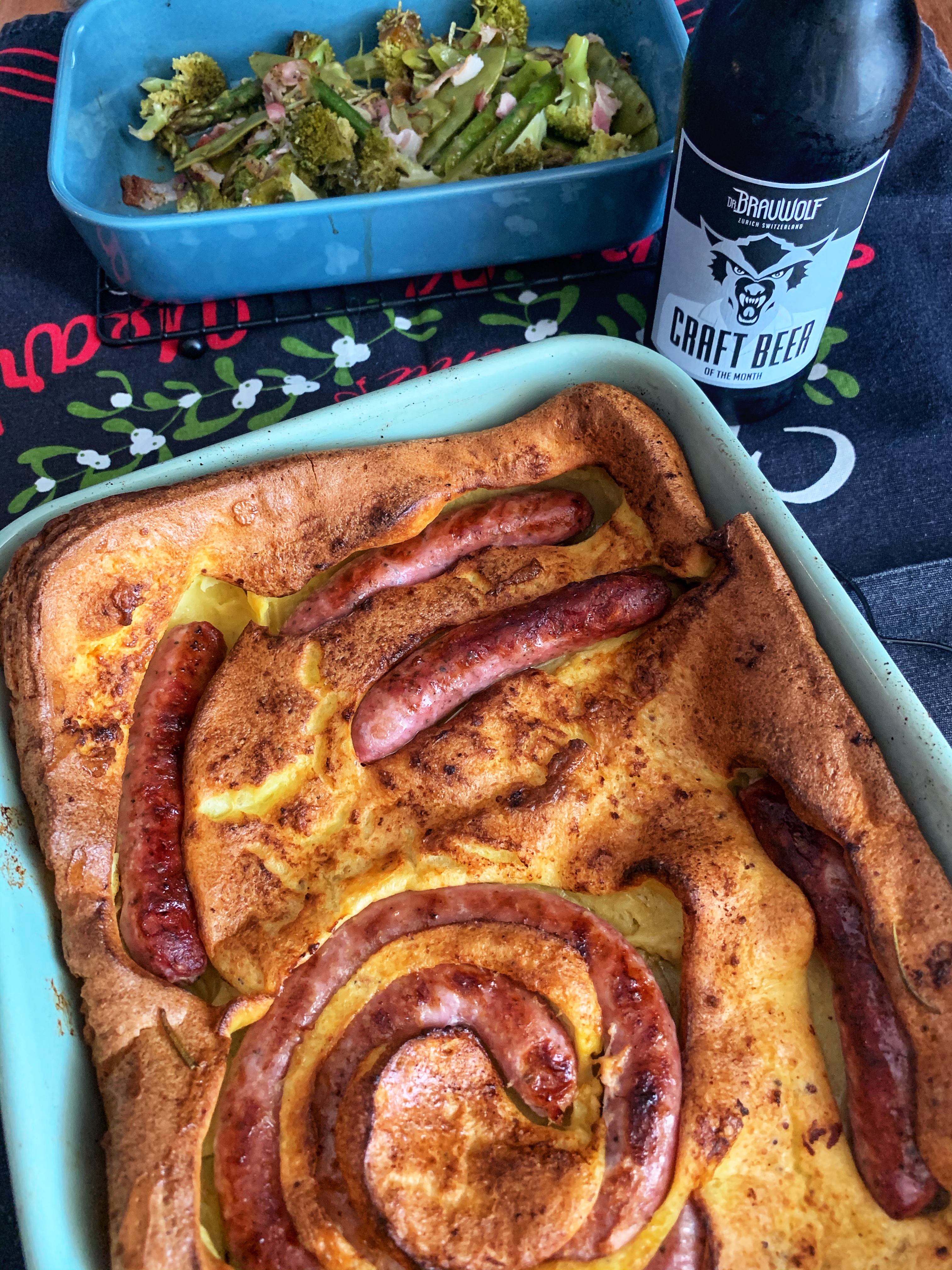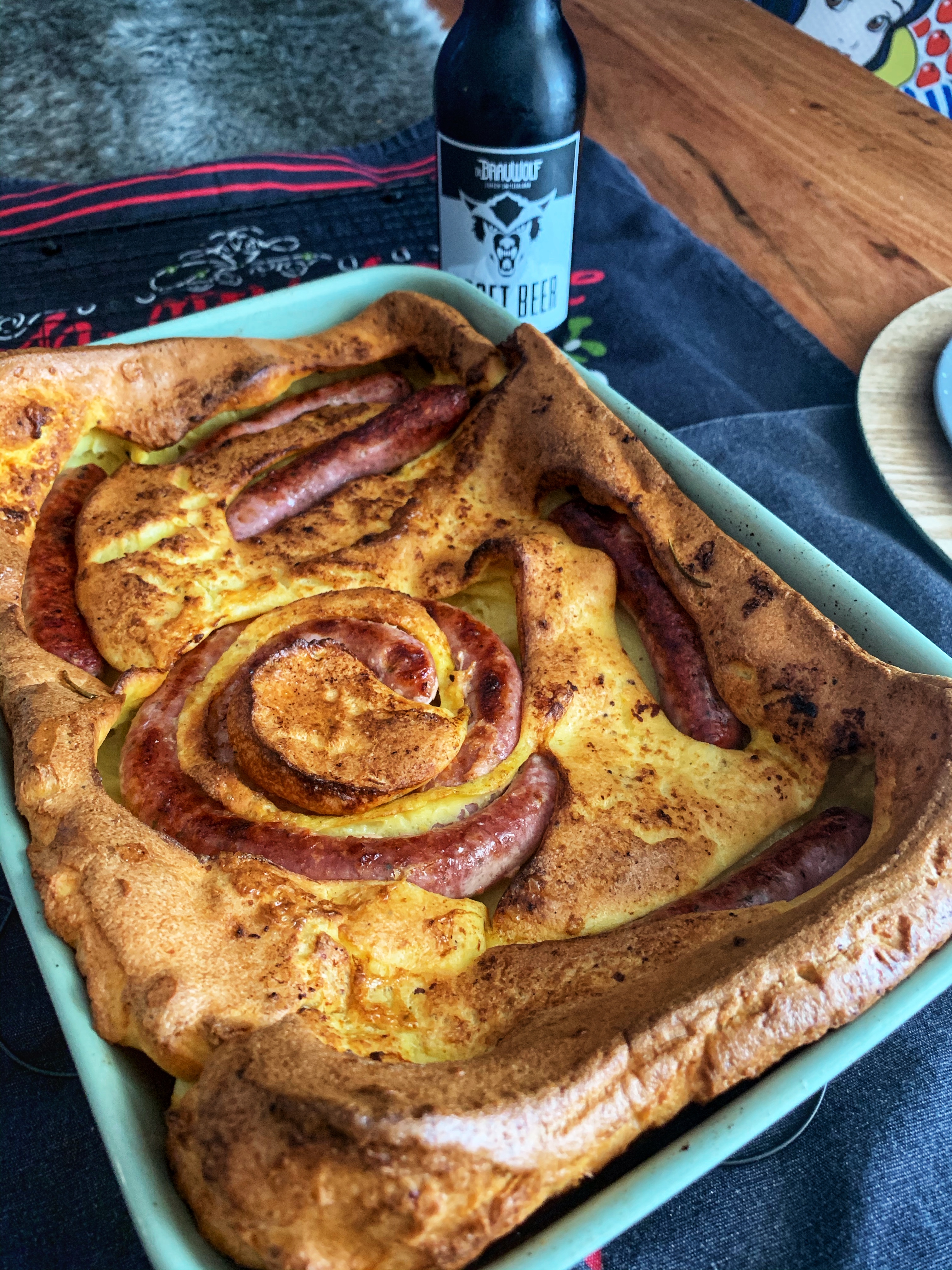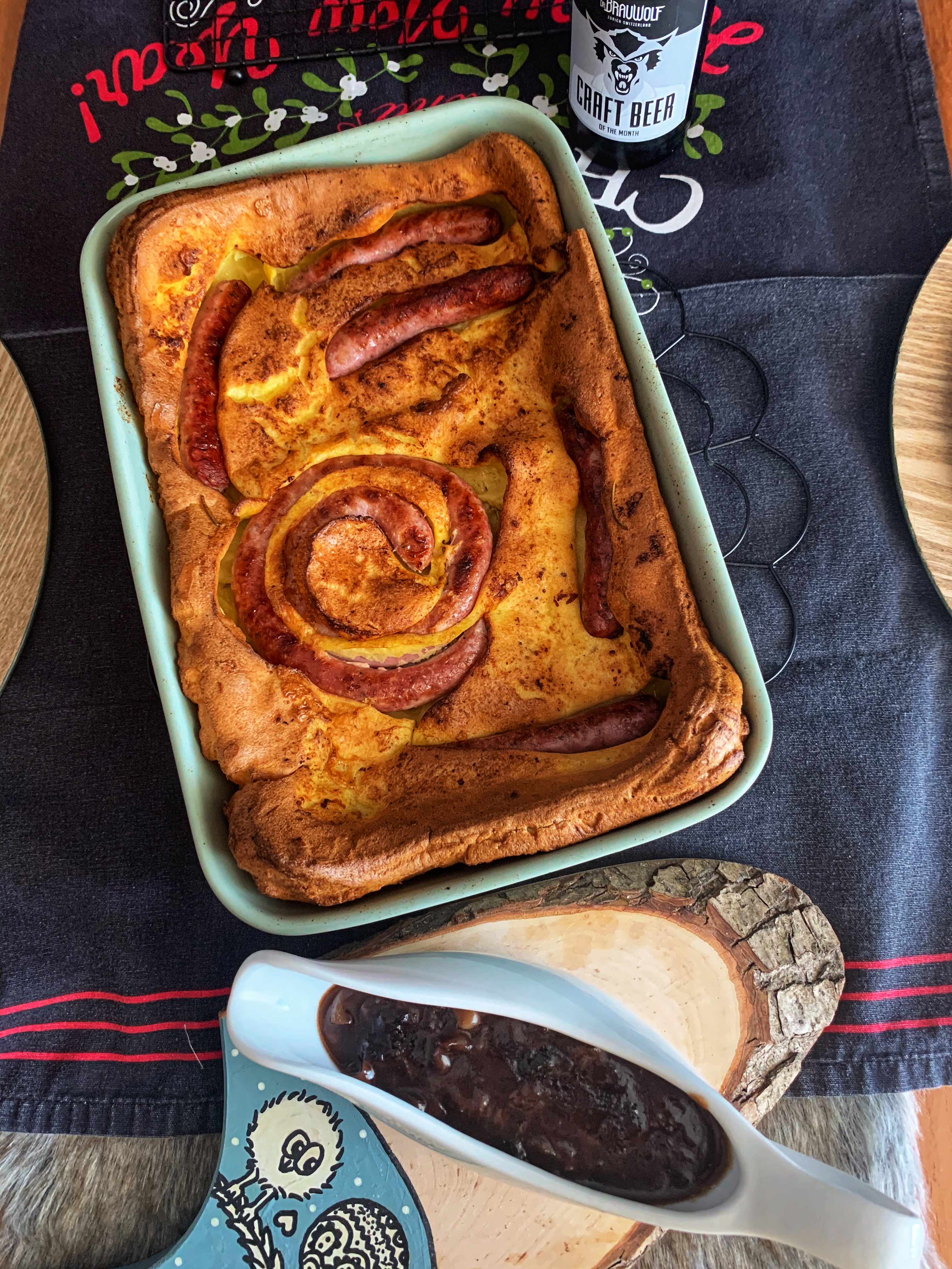 I recommend serving the Toad in the Hole as soon as it comes out of the oven. With the Yorkshire Pudding base, it will deflate once it’s been sat outside.