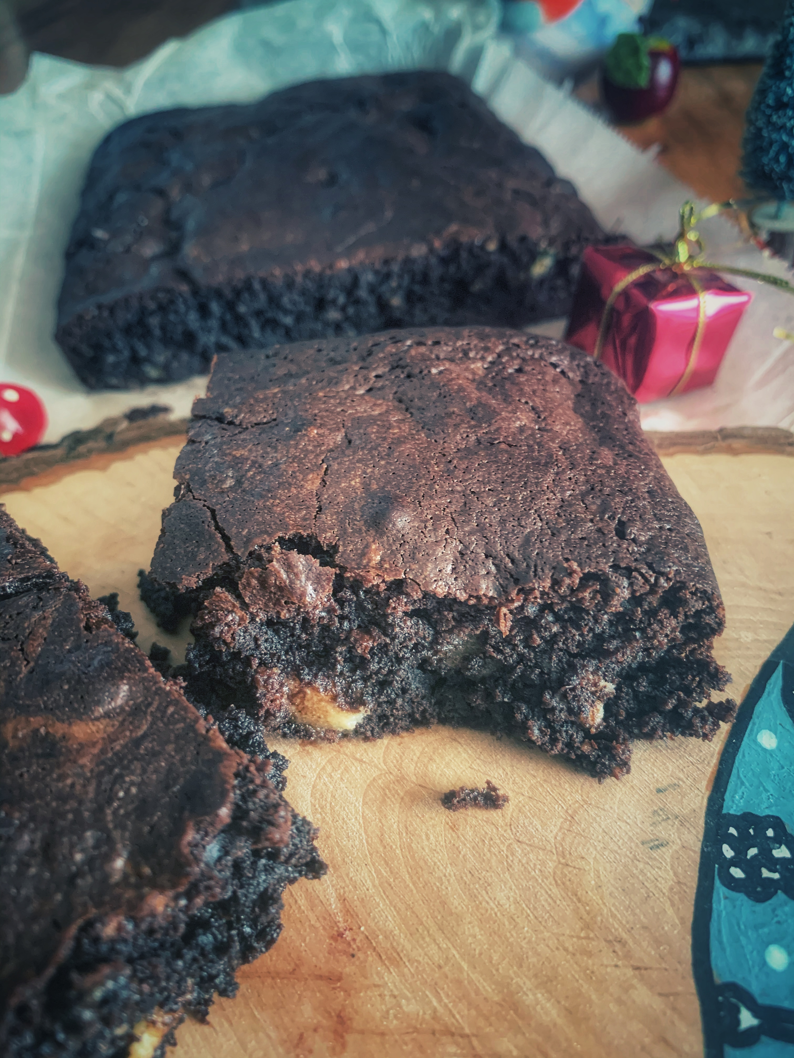 The sour cherries and marzipan in all that chocolate make this the ultimate festive pudding. And as with all brownies, they’re super easy to make. Feel free to add or subtract a few minutes to the baking time to get your perfect bake. The ones in the picture had a nice squidgy centre, but if I was baking these for just me, I’d be smack-bang in the gooey brigade!