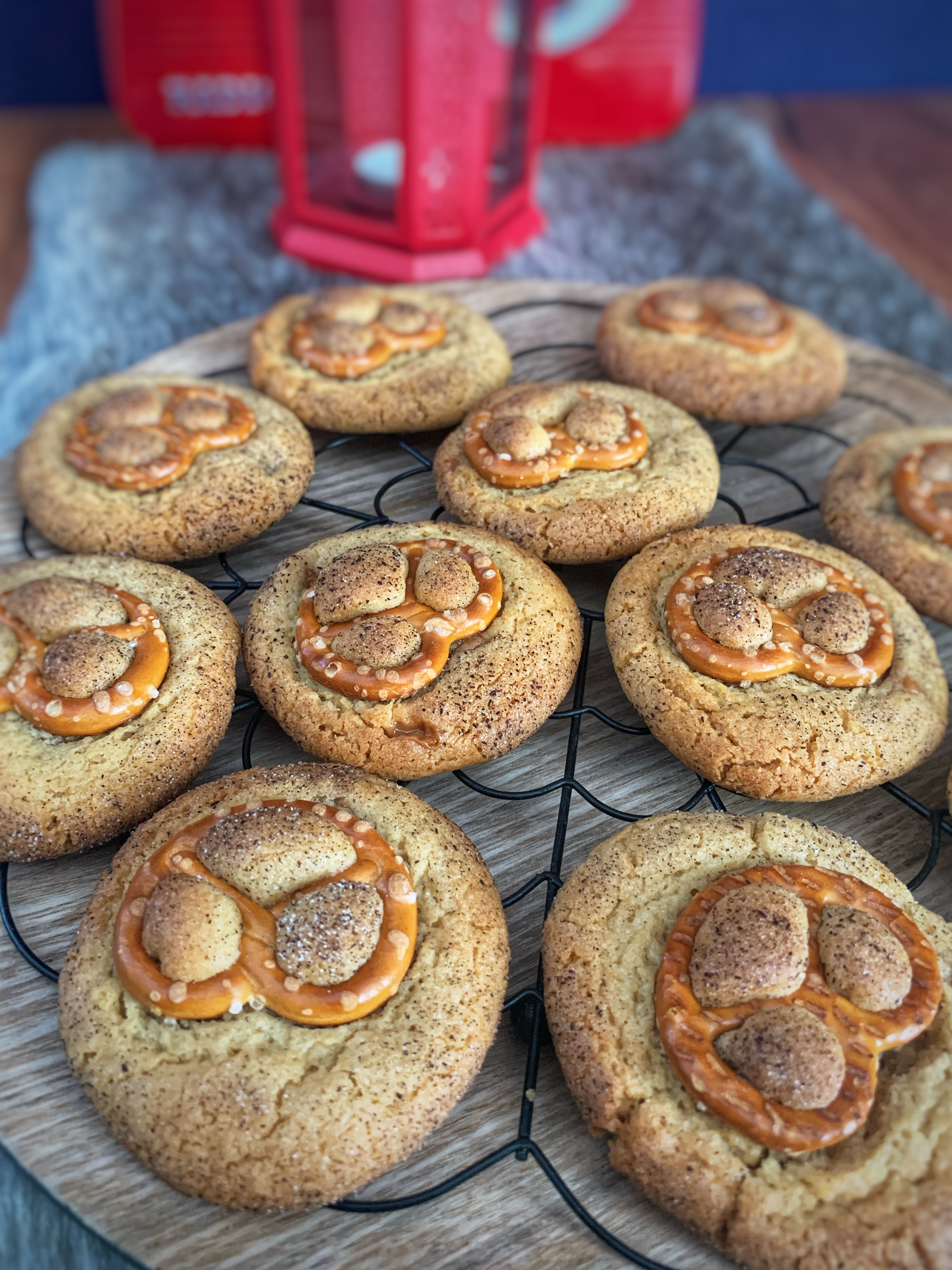 There’s all sorts of good going on in these cookies. Sugar-galore on the inside, rolled in vanilla sugar on the outside. Crunch from the pretzels with their kick of salt. Nutty browned butter and liquid smoke. Chewy caramel. I honestly can’t recommend these cookies highly enough. If you love that salty/sweet combination as much as I do, these will be a hit!